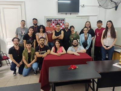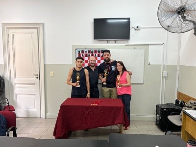 Armamos también, a partir del tercer mes, un torneo interno en el que mezclé jugadores intermedios con principiantes, que habían aprendido mucho en esos meses, y la verdad que se presentaron luchas muy interesantes en la que todos pudieron jugar contra todos en un torneo con sistema americano. Incluso ocurrió que principiantes le ganaron a algunos intermedios. Se pudieron conocer todos y a partir de ese momento se armó un grupo solo de comunidad de ajedrez UAI de aproximadamente 20 personas. En el torneo les enseñé a usar el reloj, aprendieron a anotar las partidas usando planillas, y quedaron encantados.