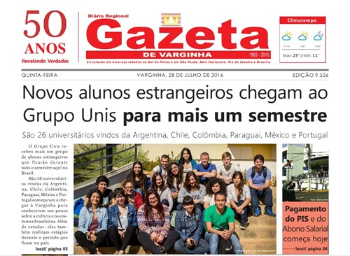 Cuatro alumnos de la Sede Regional Rosario de UAI, fueron elegidos, como becarios para realizar un intercambio estudiantil durante el segundo semestre del 2016 en el Centro Universitário do Sul de Minas (UNIS-MG, Brasil), en el marco del convenio existente entre ambas Casas de Altos Estudios y con el apoyo de la Red ACINNET.