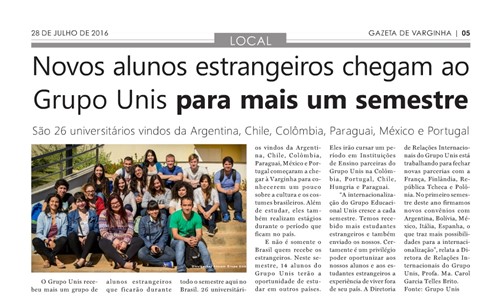 El Grupo Educacional UNIS ofrece a los alumnos dentro programa de ¨Movilidad Académica¨: beca de estudio; alojamiento; traslado al aeropuerto de San Pablo / Varginha / Aeropuerto de Sao Paulo; prácticas con asignación estímulo de 400 reales mensuales; participación en investigación académica de acuerdo con el curso de formación durante el período de movilidad con asignación estímulo de 400 reales mensuales; monitoreo de Relaciones Internacionales en la documentación de la Policía Federal.