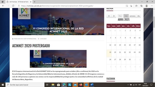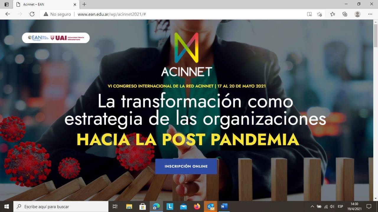 Portal de acceso al VI congreso de la Red ACINNET 2021. Para más información: http://www.ean.edu.ar/wp/acinnet2021/#