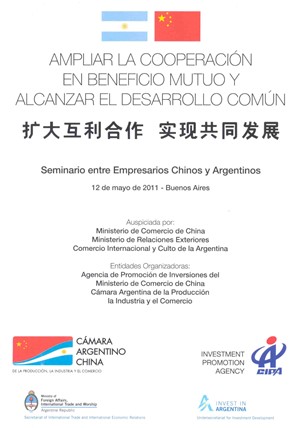 Con el lema "Ampliar la cooperación en beneficio mutuo y alcanzar el desarrollo común", el jueves 12 de mayo, tuvo lugar el seminario entre contrapartes Chinas y Argentinas en el Salón San Isidro del Sheraton Hotel de la Ciudad Autónoma de Buenos de Buenos Aires.