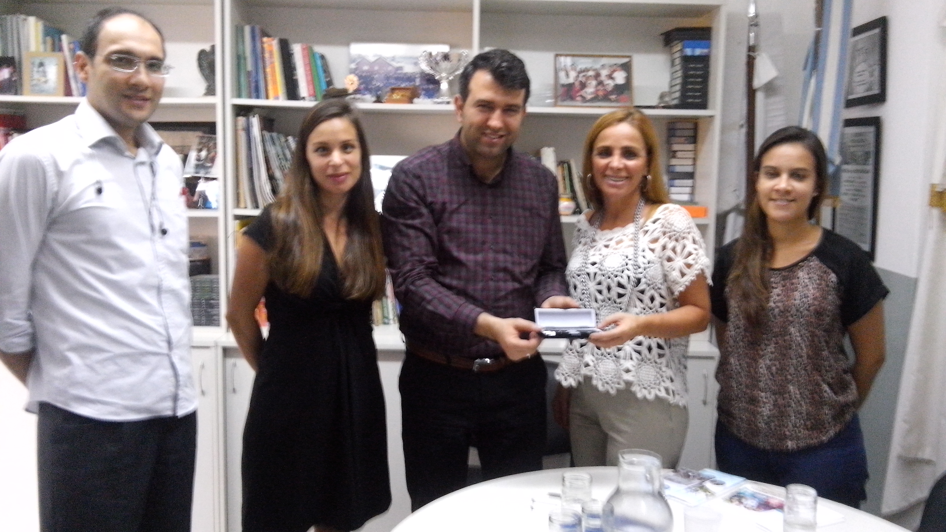 La Directora General del Colegio, Lic. Patricia Zinno, recibiendo un presente de parte de la delegación.