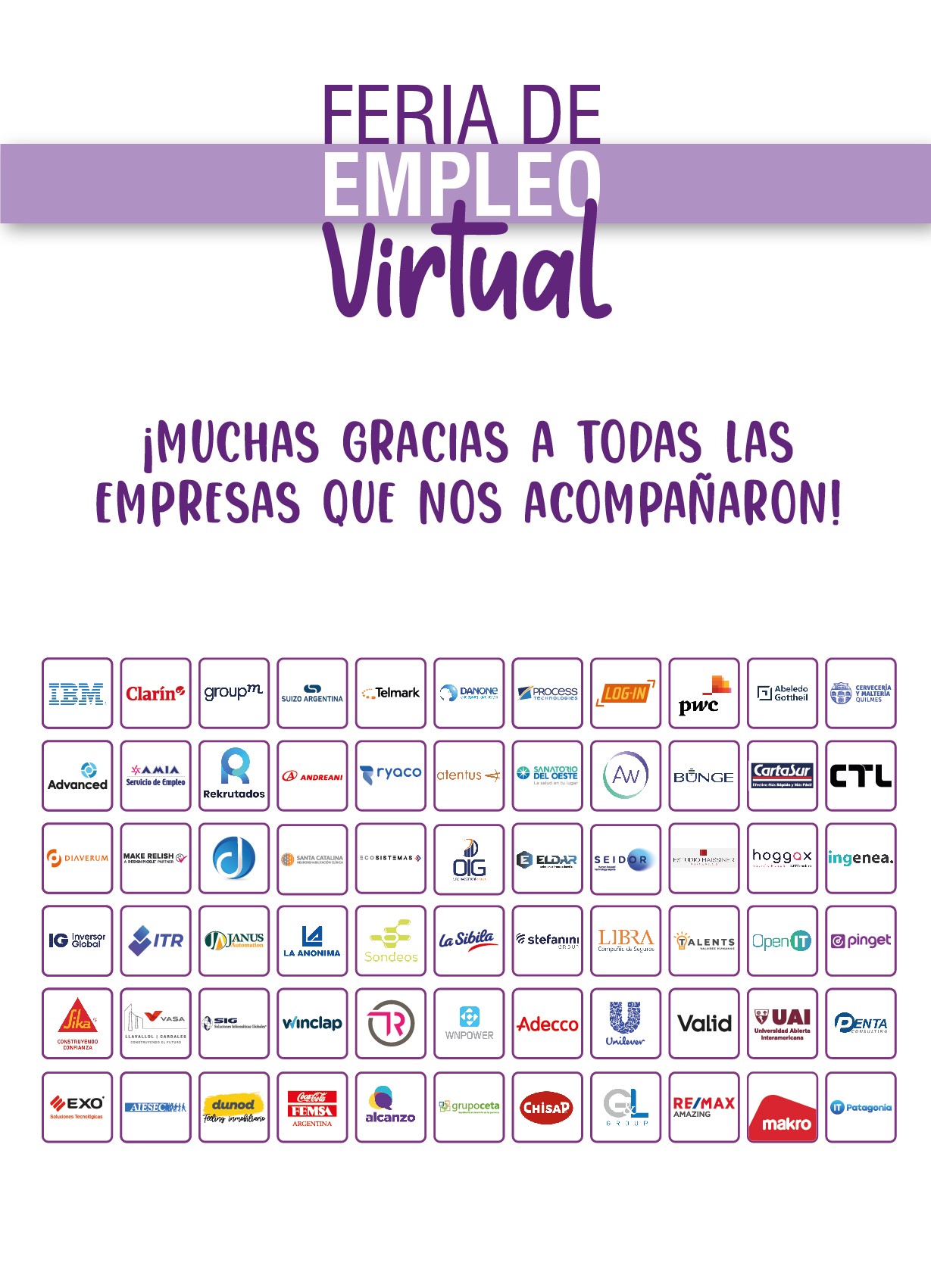 Dentro de las empresas participantes se encuentran grandes compañías como Coca-Cola, Unilever, IBM, Clarín, Andreani, Adecco, Danone, La Anónima, Makro, Exo y muchísimas otras.