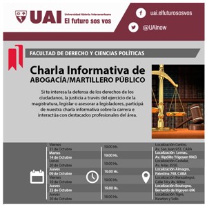 Participá de nuestras charlas informativas del mes de Octubre.