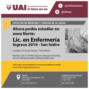 En el 2016, abrimos la Lic. en Enfermería en nuestra sede ubicada en Zona Norte. Podrás cursar en el turno de la Noche las clases teóricas y las prácticas días de semana en los turnos de la mañana, tarde o intensivas de un día.