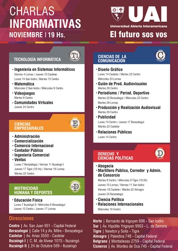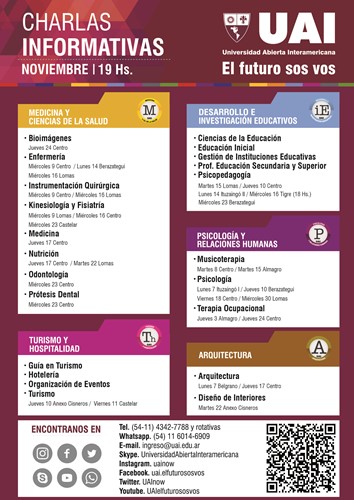 Buscá tu charla y vení a conocer la Universidad. Consultanos al 4342-7788 o informes@uai.edu.ar