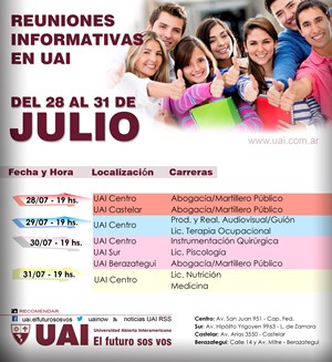Ante cualquier consulta mandanos un e-mail a ingreso@uai.edu.ar o comunicate con nosotros al 4-342-7788.