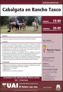 El valor por persona de la cabalgata será $100 . Que incluye: pase al club, cabalgata y almuerzo en Rancho Taxco.