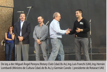 150 minutos con la presencia de Miguel Ángel Pereyra (reciente Gobernador electo de Rotary del distrito Capital Federal), Ing. Luis Franchi (Vicerrector de Extensión UAI), Ing. Hernán Lombardi (Ministro de Cultura y Presidente de la Ente de Turismo de la Cdad. de Bs As.) y Germán Canelo (alumno de la Universidad, presidente de Rotaract UAI y líder del emprendimiento)