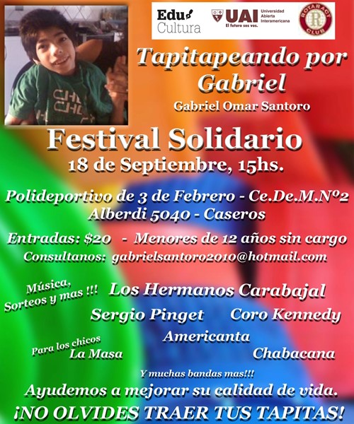 Tapitapeando por Gabriel". Con la participación de Sergio Pinget (ganador de Talento Argentino), Los Carabajal,La Masa de 100% Lucha, Coro Kennedy,