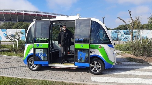 El Ing. Franco Balich en el bus autónomo.