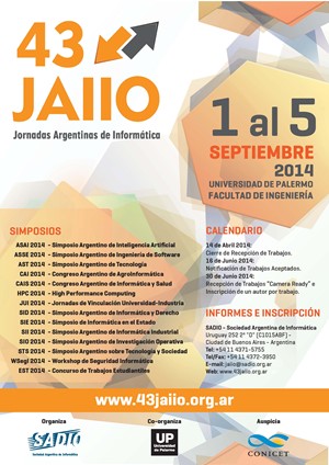 Enviar un correo electrónico a jaiio@sadio.org.ar con el Asunto "Estudiantes voluntarios 43 JAIIO", hasta el 4 de julio de 2014, indicando: