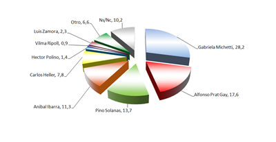 Alfonso Prat Gay, por su parte se mantiene en un distante segundo lugar, a diez puntos porcentuales de Gabriela Michetti. Pero esta ultima, si bien continua liderando, parecería haber alcanzado una meseta y su intención de voto no registra ningún incremento durante los últimos 20 días. Esto podría ser una mala noticia para la candidata del PRO. Primero porque no ha conseguido penetrar el segmento indeciso que aun registra un diez porciento de los electores , segundo porque históricamente un amesetamiento en la intención de voto a esta distancia de las elecciones suele anticipar una disminución y, tercero, porque el segmento indeciso podria migrar hacia Prat Gay arrastrado por la figura de Carrio que aun no ha puesto todo su peso en la campaña de Capital.