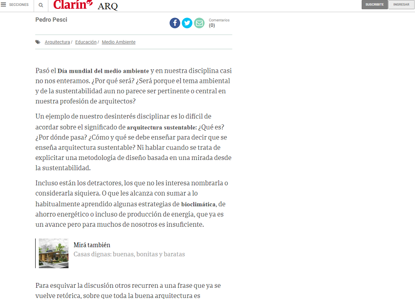 A través del arquitecto y docente de la institución, Pedro Pesci, la Universidad Abierta Interamericana tuvo su columna de opinión en Clarín