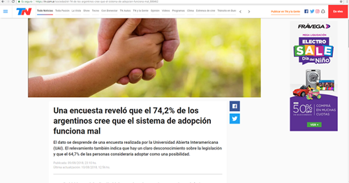 La Universidad Abierta Interamericana salió nombrada en el diario online Infobae y en Todo Noticias, debido a la encuesta sobre adopción que la institución realizó recientemente.