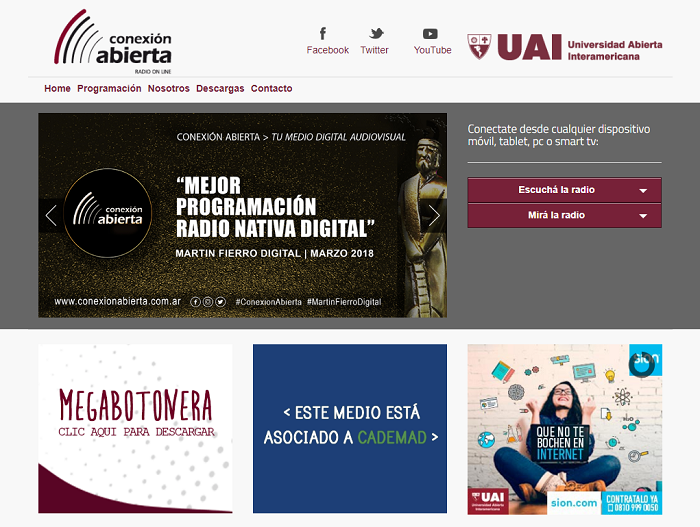 El 10 de diciembre se llevó a cabo la segunda entrega de los Martín Fierro Digital, y Conexión Abierta, la radio de la Universidad Abierta Interamericana, estuvo nominada en el rubro “Radio Nativa Digital”, compitiendo en la terna con: Radio Zónica, Radio Led, y Futurock.