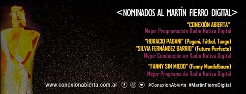 Conexión Abierta, también participa en "Martín Fierro Digital a la mejor conducción en radio digital" por los programas "Pagani fútbol" y "Futuro Perfecto" conducido por el periodista de Tyc Sports y Silvia Fernández Barrio, respectivamente; completa la terna Dario Sztajnszajber con "Demasiado humano".